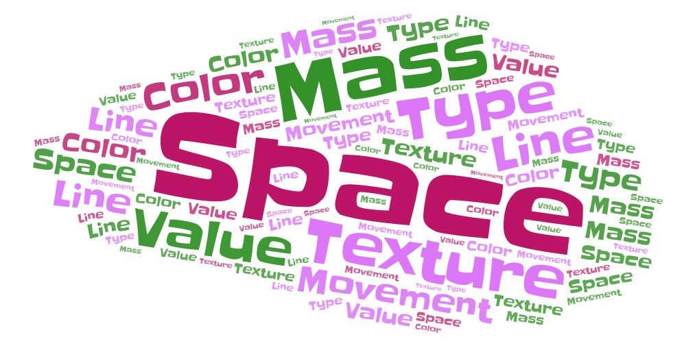 Mass – Here, mass is interchangeable with volume. A mass is a solid body or a grouping of visual elements (line, color, texture, etc.) that compose a solid form. Volume is a three-dimensional form comprising length, width, and depth. Three-dimensional forms contain points (vertices), lines (edges), and planes (surfaces). A mass is the two-dimensional appearance of a three-dimensional form.