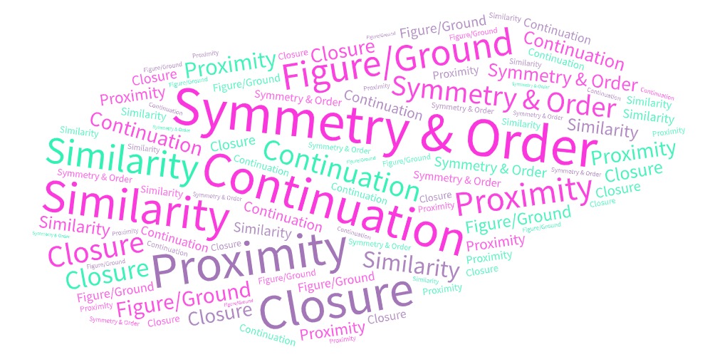 There are six individual principles commonly associated with gestalt theory: similarity, continuation, closure, proximity, figure/ground, and symmetry & order (also called prägnanz). There are also some additional, newer principles sometimes associated with gestalt, such as common fate.